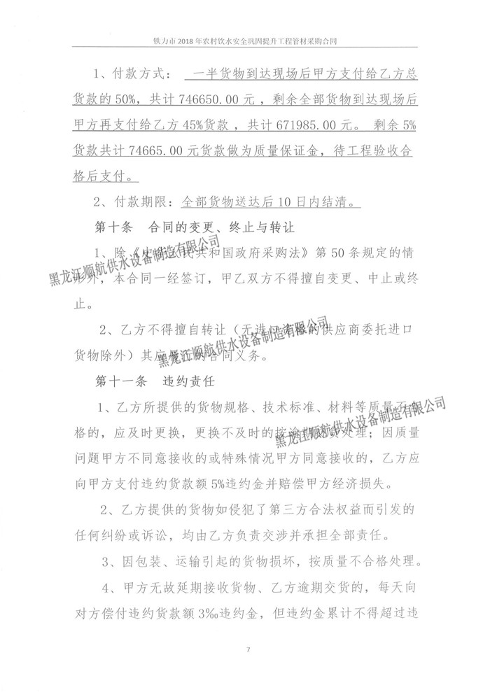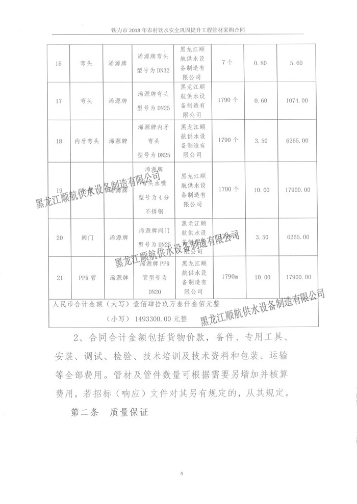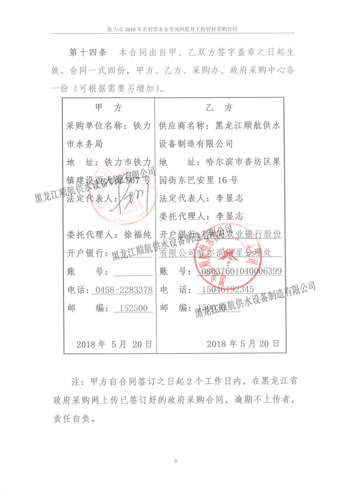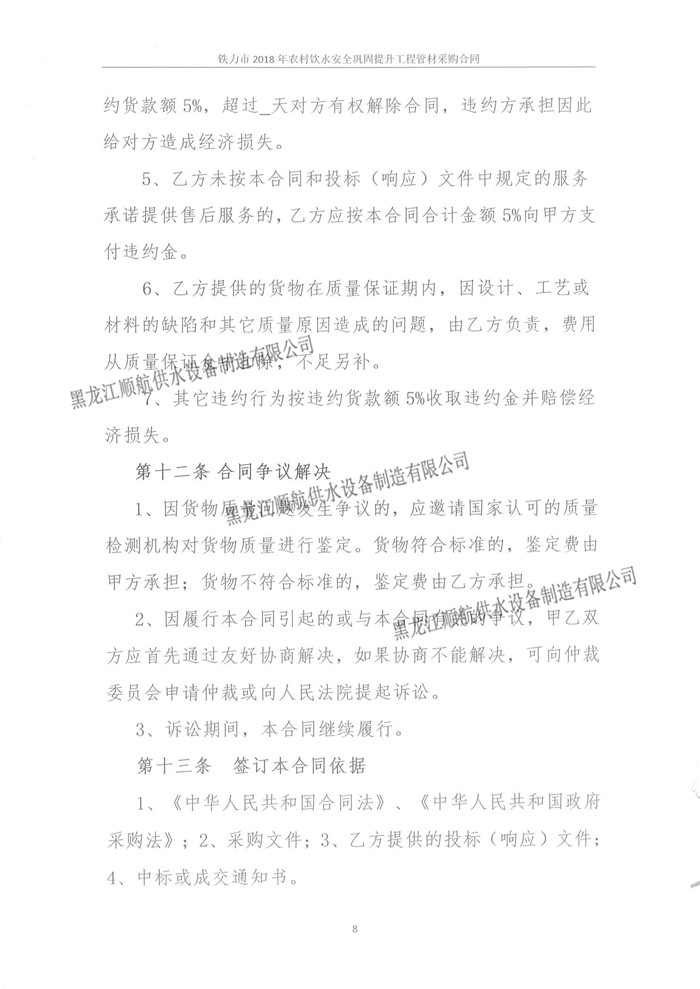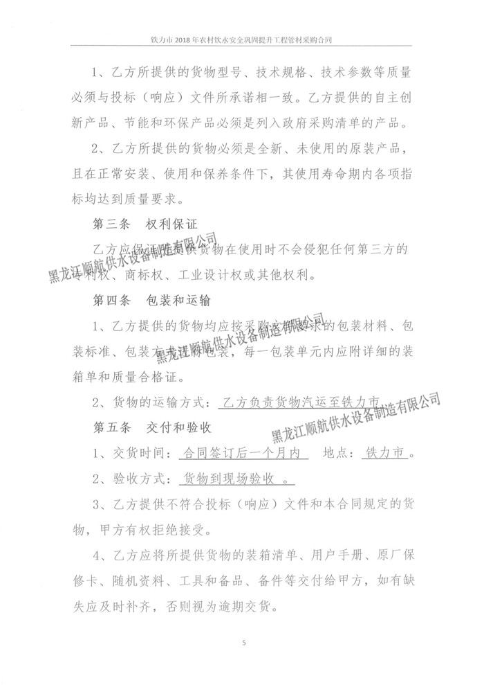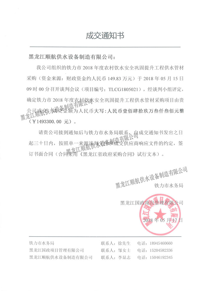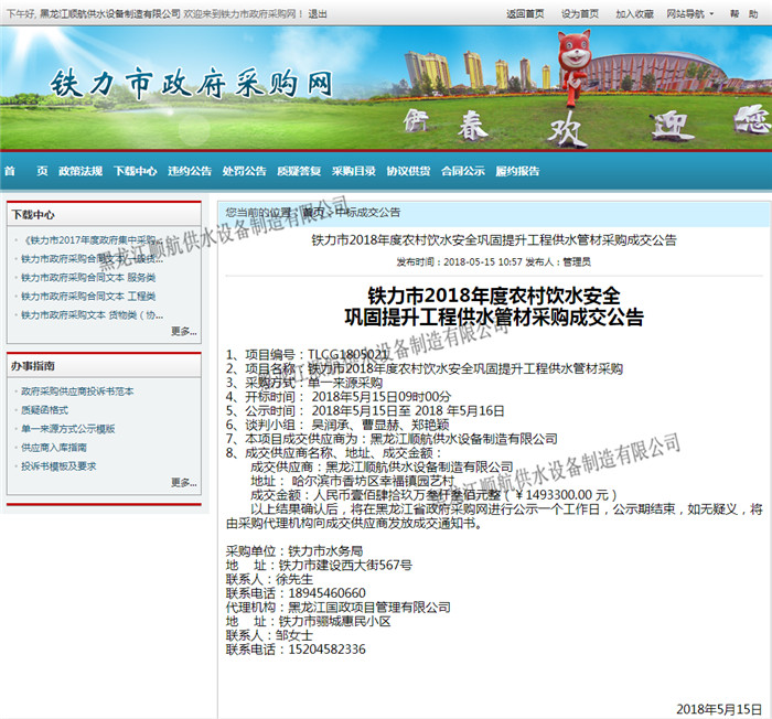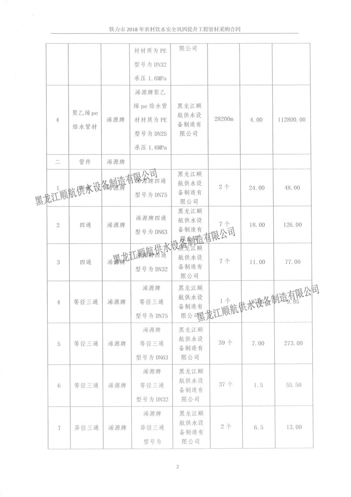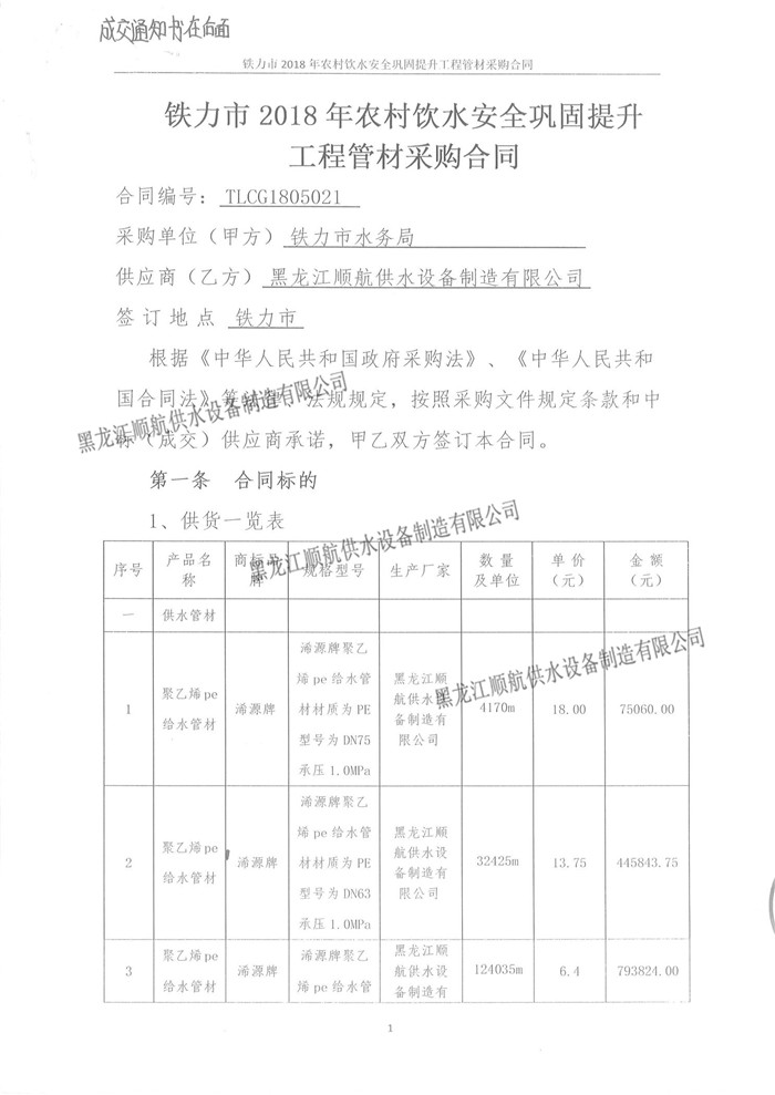 铁力市2018年度农村饮水安全巩固提升工程供水管材采购 已全部完成合同工作内容并经验收交付使用 |