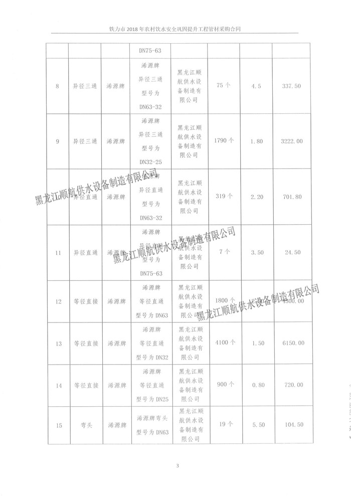 铁力市2018年度农村饮水安全巩固提升工程供水管材采购 |