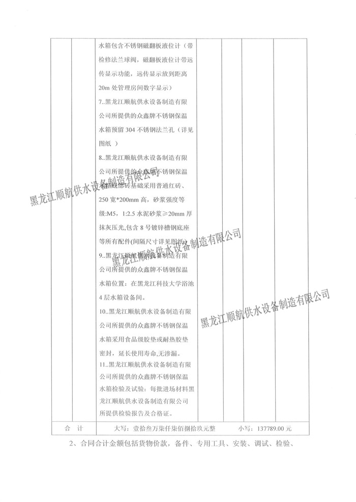 黑龙江科技大学浴池水箱采购 已全部完成合同工作内容并经验收交付使用 |