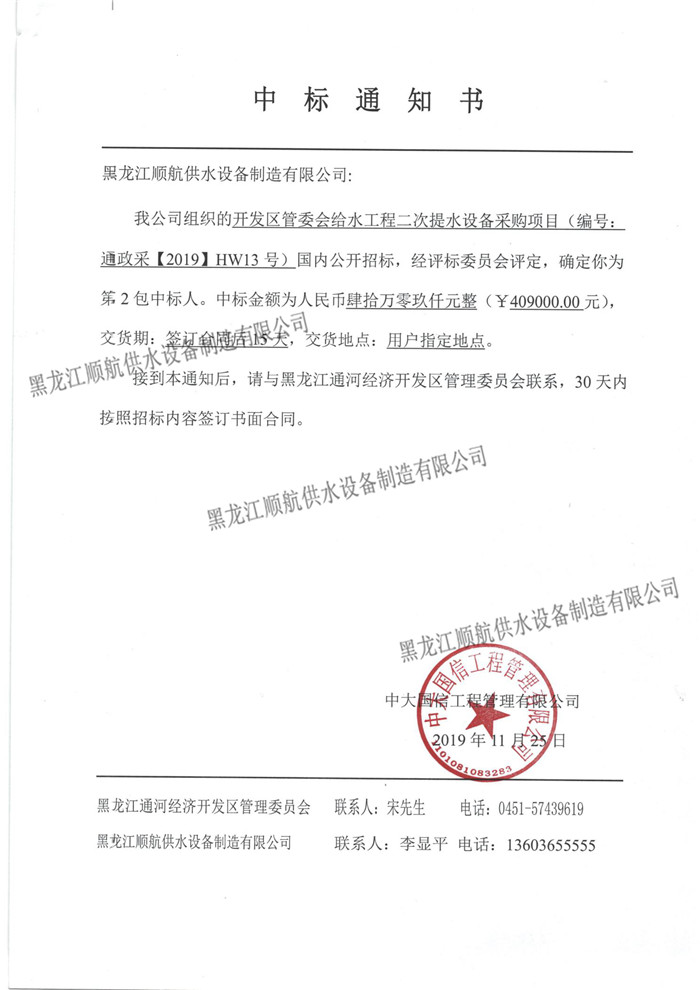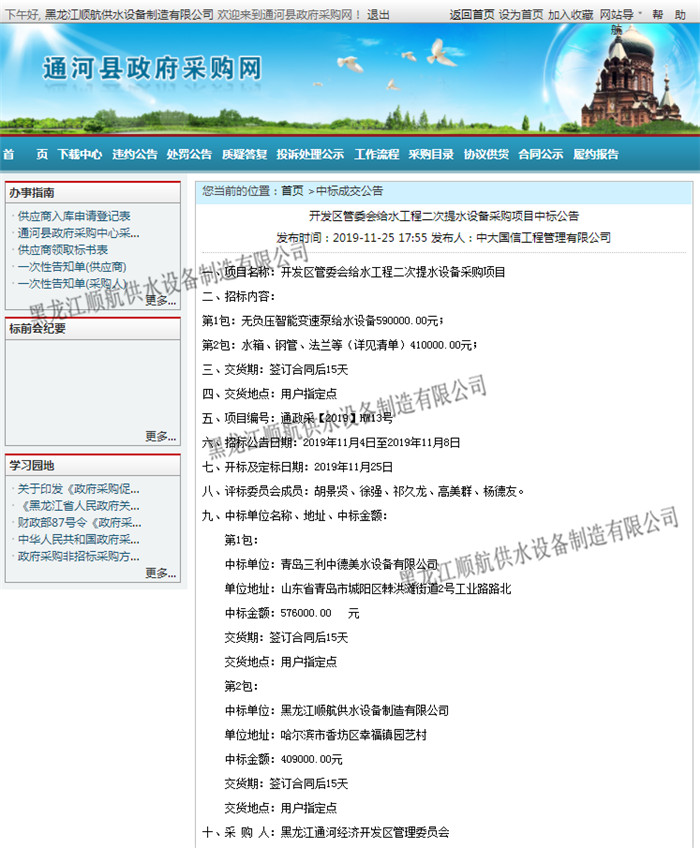 开发区管委会给水工程二次提水设备采购项目 已全部完成合同工作内容并经验收交付使用 |